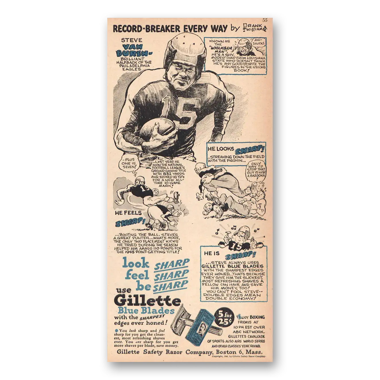1946 Gillette Blue Blades Print Ad | Steve Van Buren