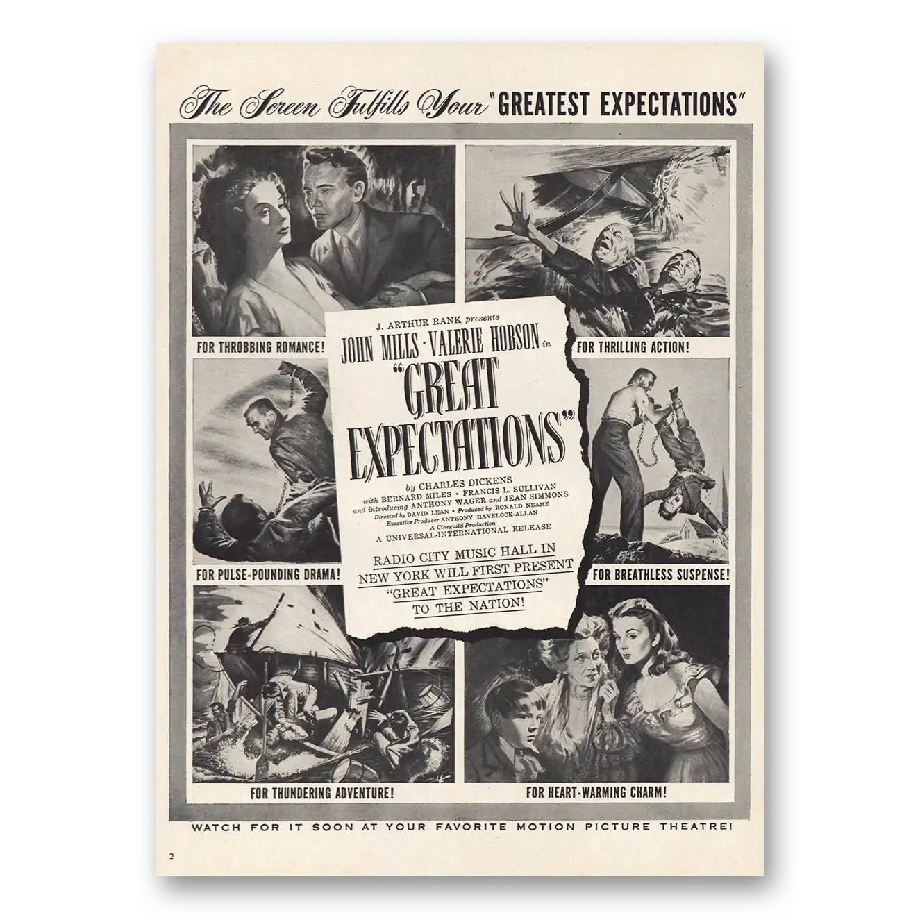 This is an original 1946 Great Expectations Movie Promo print ad published by Universal International.