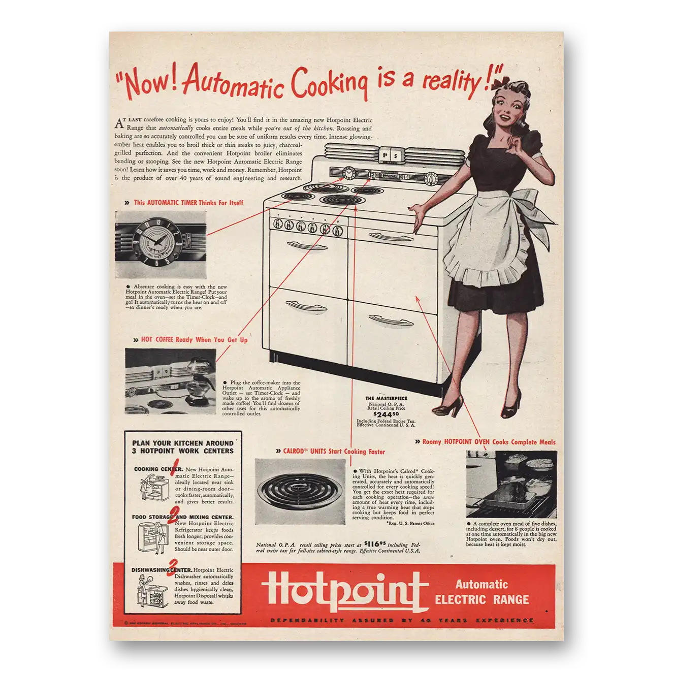 This is an original 1946 Hotpoint Electric Range print ad published by Hotpoint.