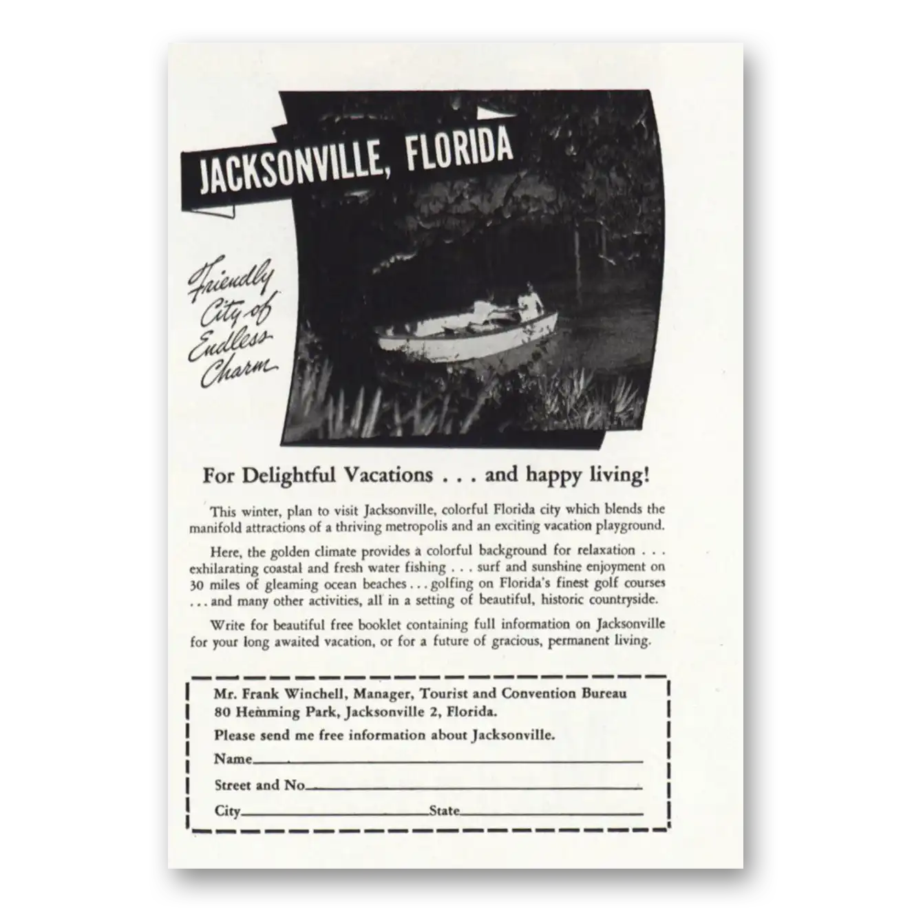 1946 Jacksonville Florida Print Ad | Friendly City
