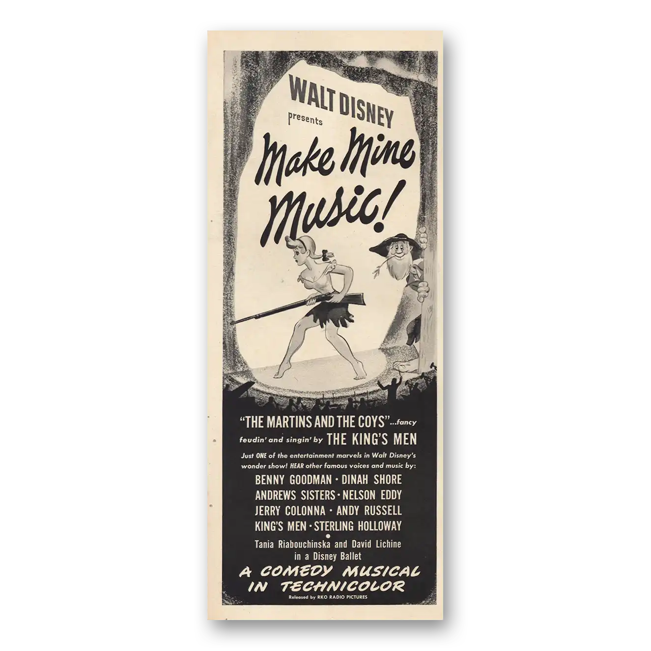 This is an original 1946 Make Mine Music Movie Promo print ad published by Walt Disney.