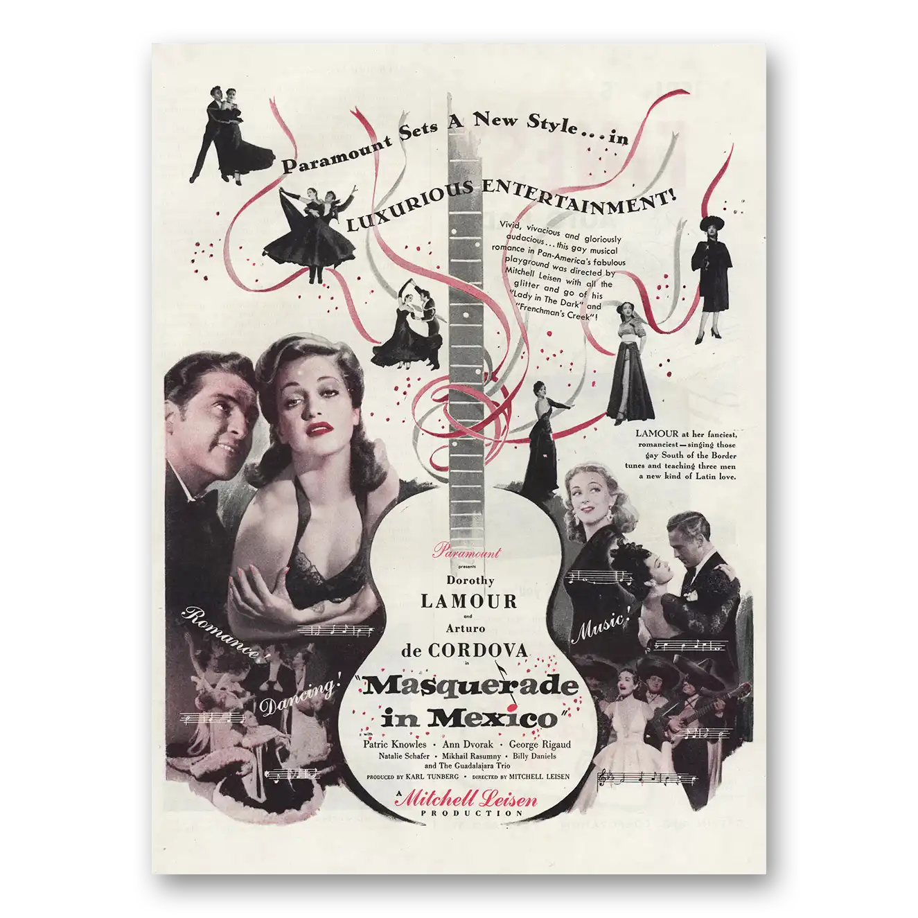 1946 Masquerade in Mexico Movie Promo Print Ad | Dorothy Lamour