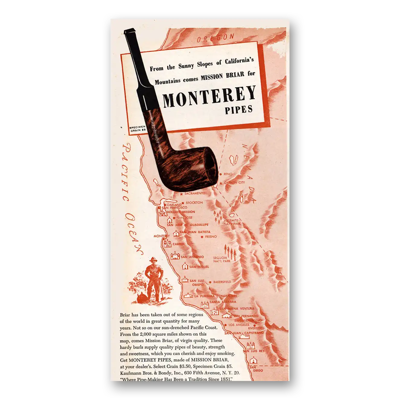 This is an original 1946 Monterey Pipes print ad published by Monterey Pipes.