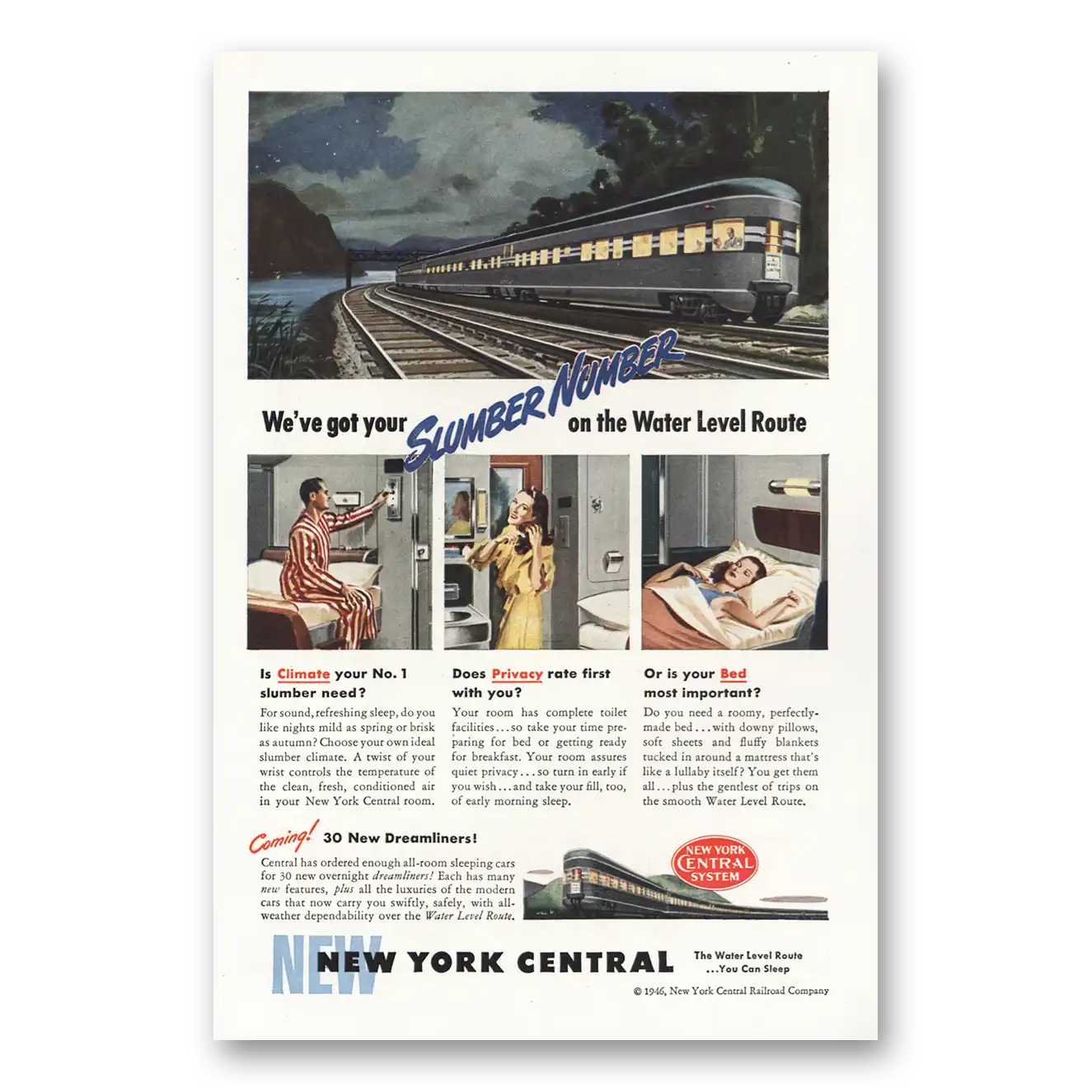 1946 New York Central Print Ad | Water Level Route