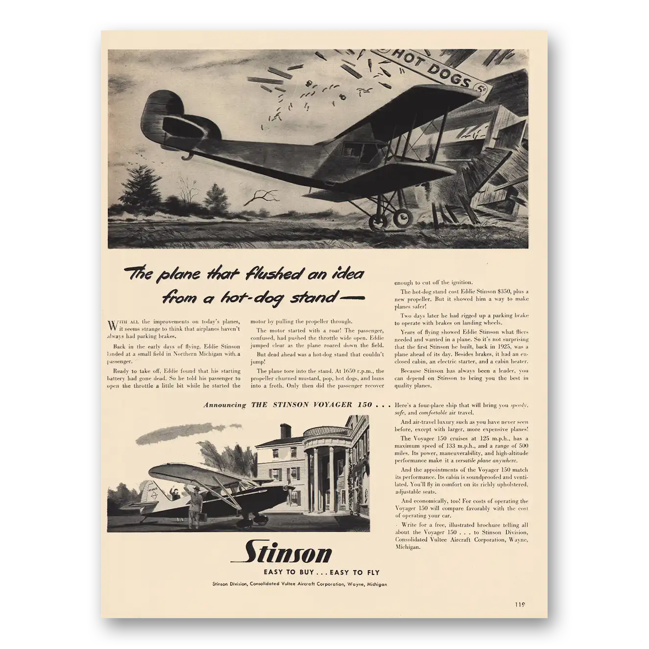 1946 Stinson Voyager 150 Airplane Print Ad | Flushed Idea