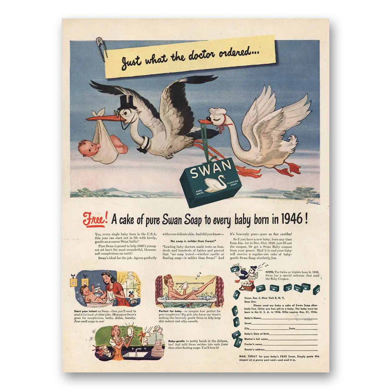1946 Swan Soap Print Ad | Doctor Ordered