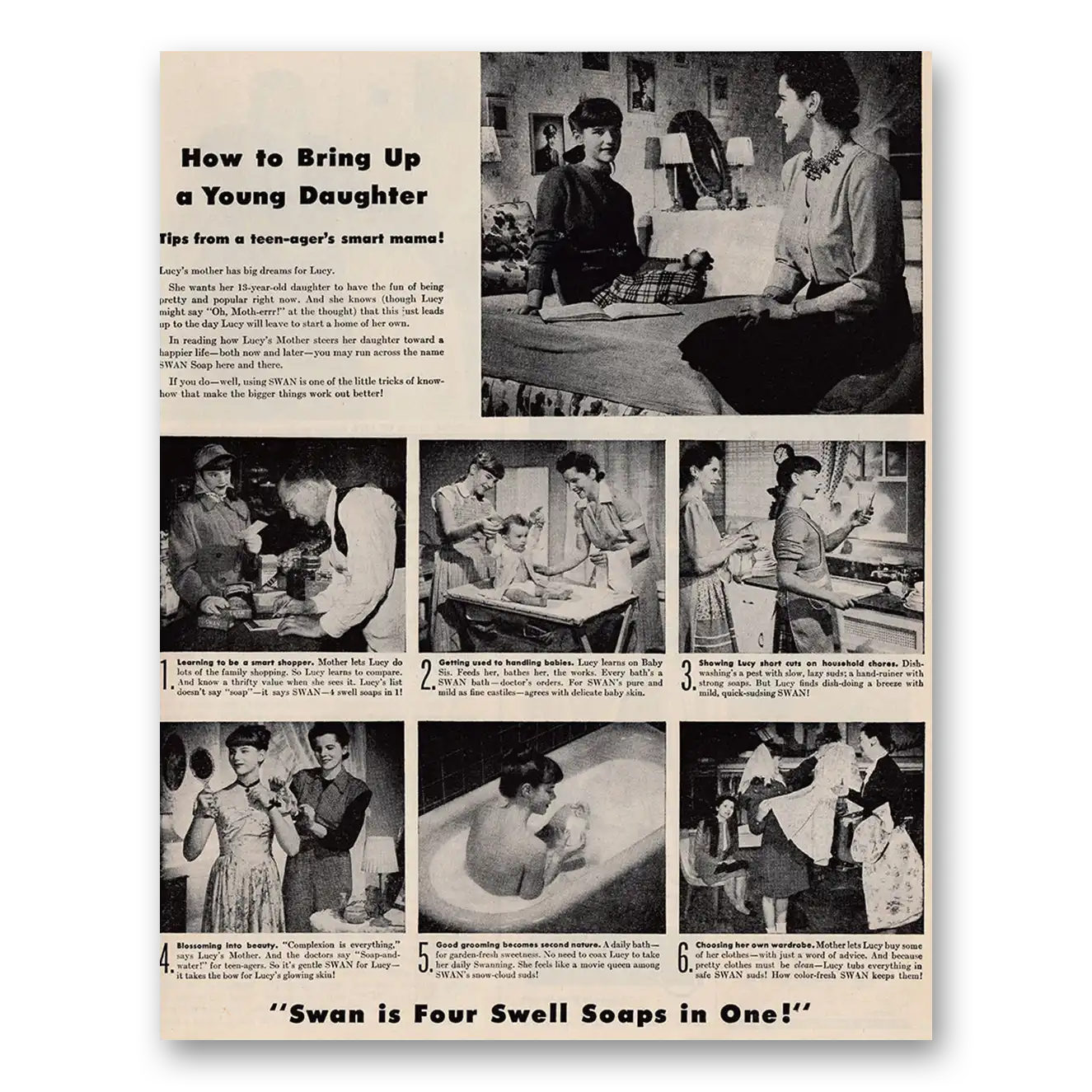 1946 Swan Soap Print Ad | Young Daughter