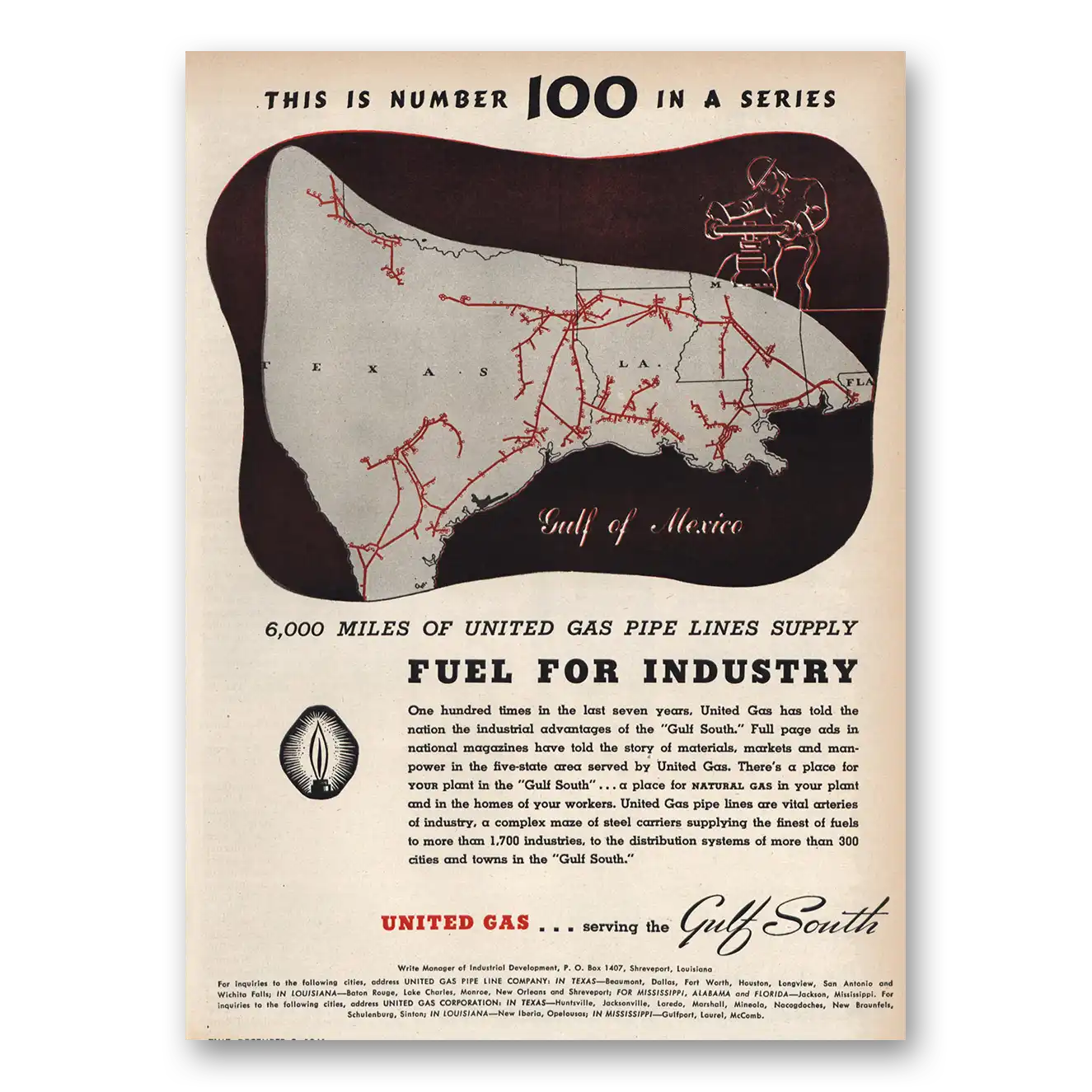 1946 United Gas Print Ad | Fuel For Industry