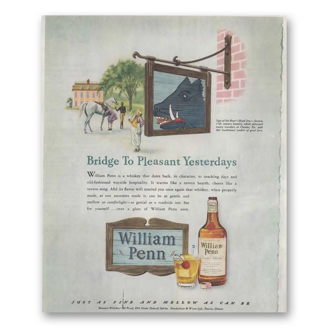 1946 William Penn Whiskey Print Ad | Bridge
