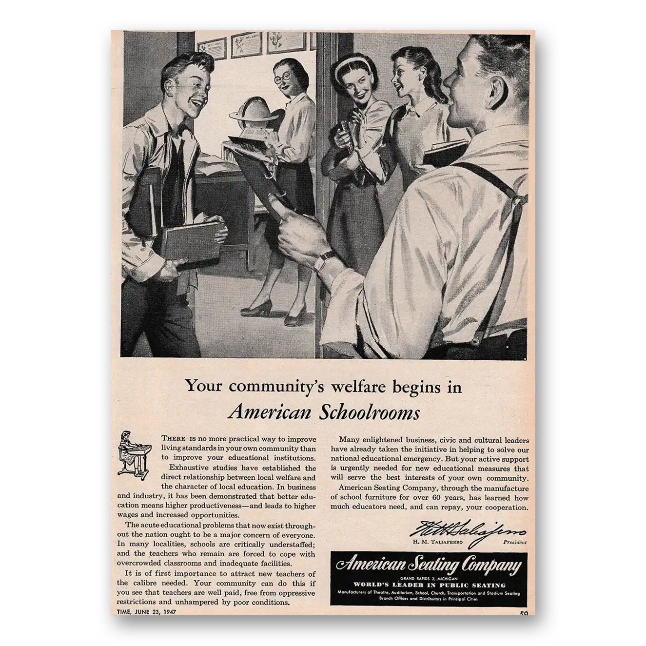 This is an original 1947 American Seating Company print ad published by American Seating Company.