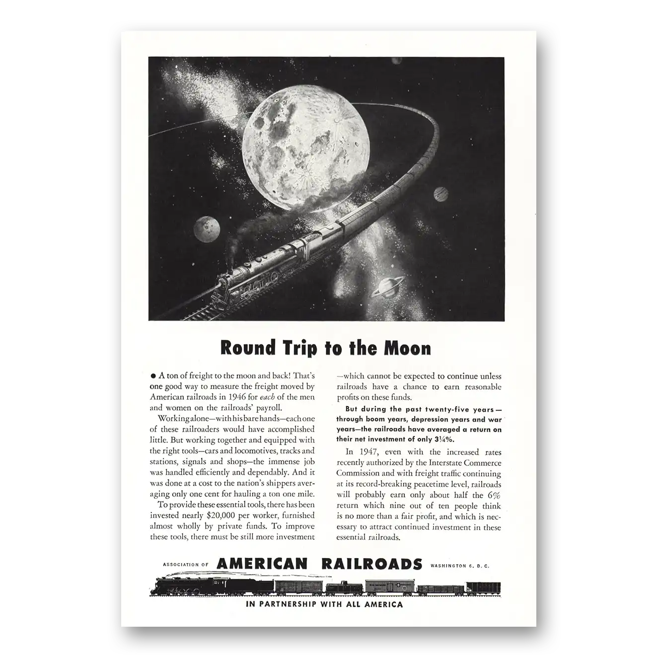 1947 Association of American Railroads Print Ad | Round Trip