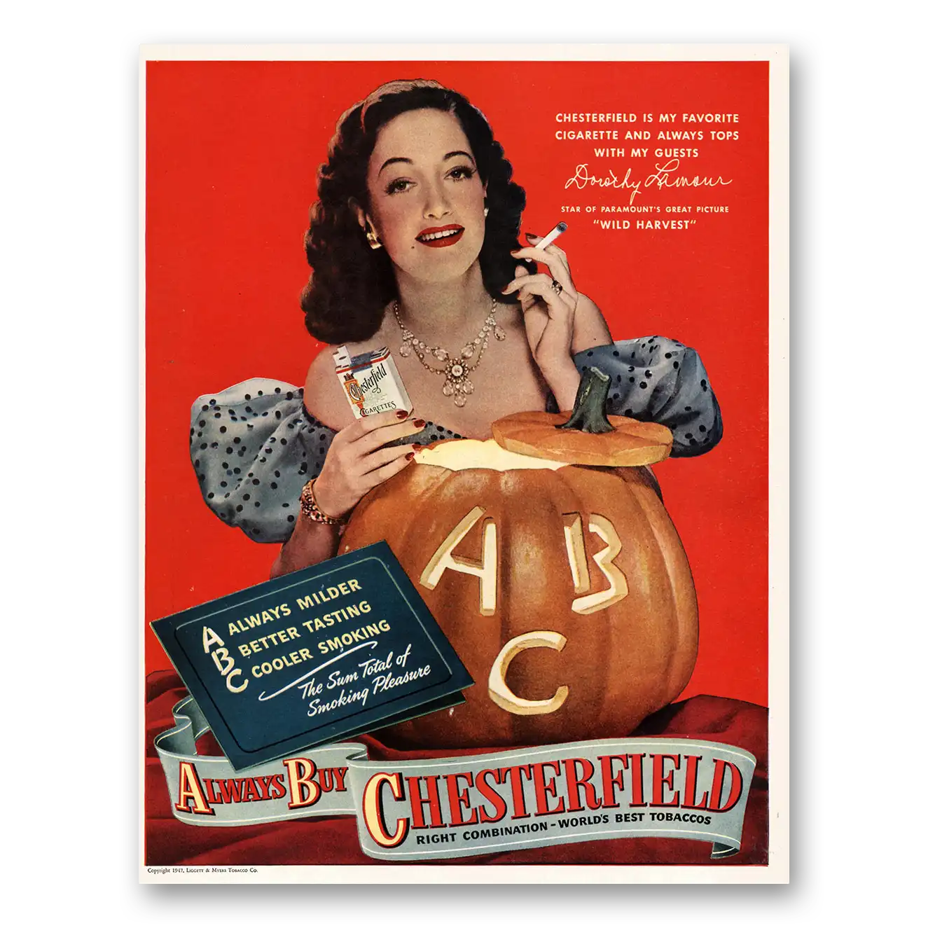 1947 Chesterfield Cigarettes Print Ad | Dorothy Lamour