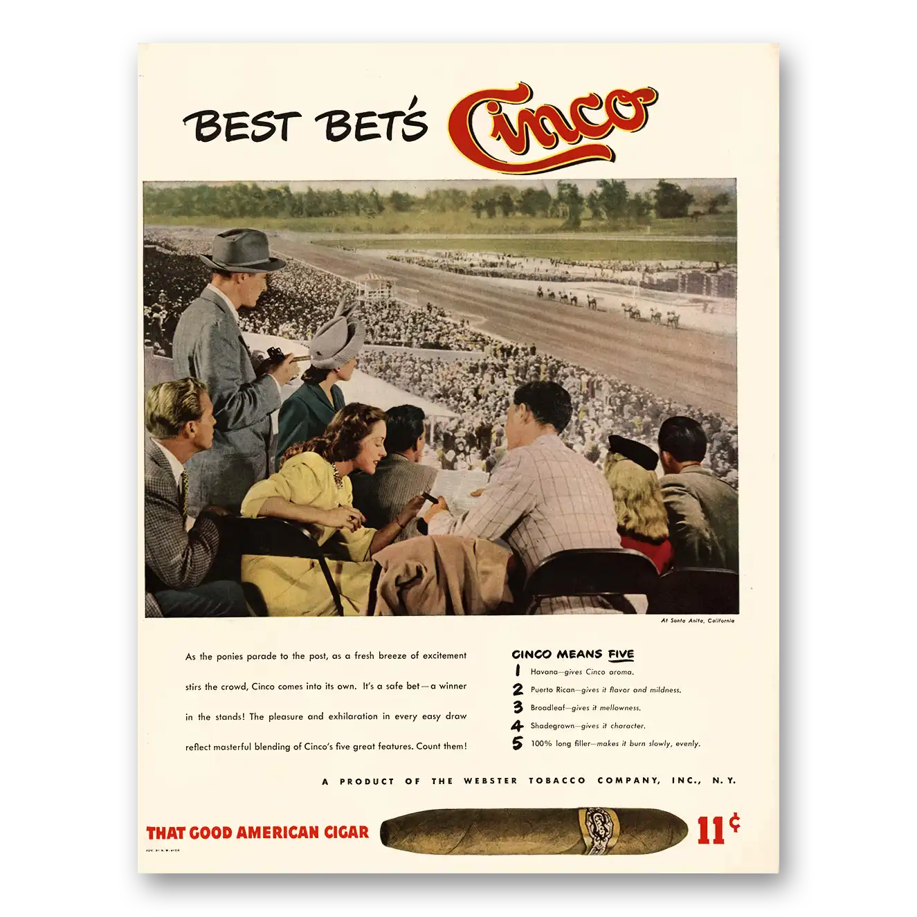 This is an original 1947 Cinco Cigars print ad published by Cinco Cigars.