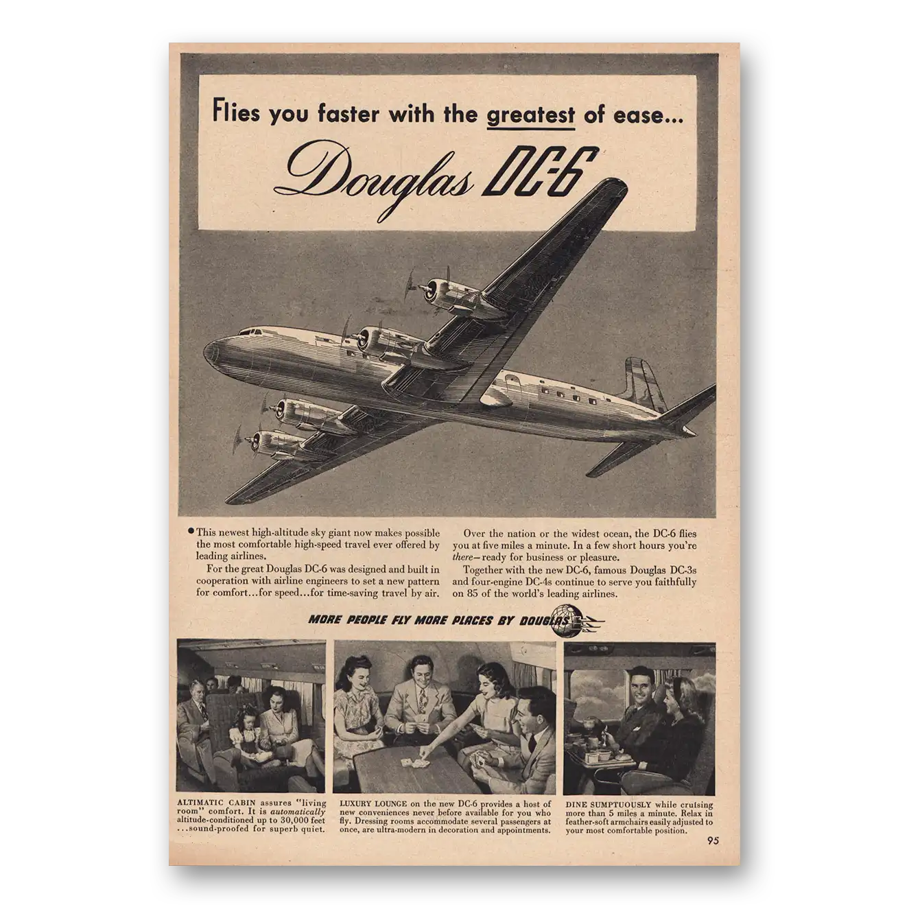 1947 Douglas DC6 Print Ad | Flies You Faster Greatest Of Ease1947 Douglas DC6 Print Ad | Flies You Faster Greatest Of Ease