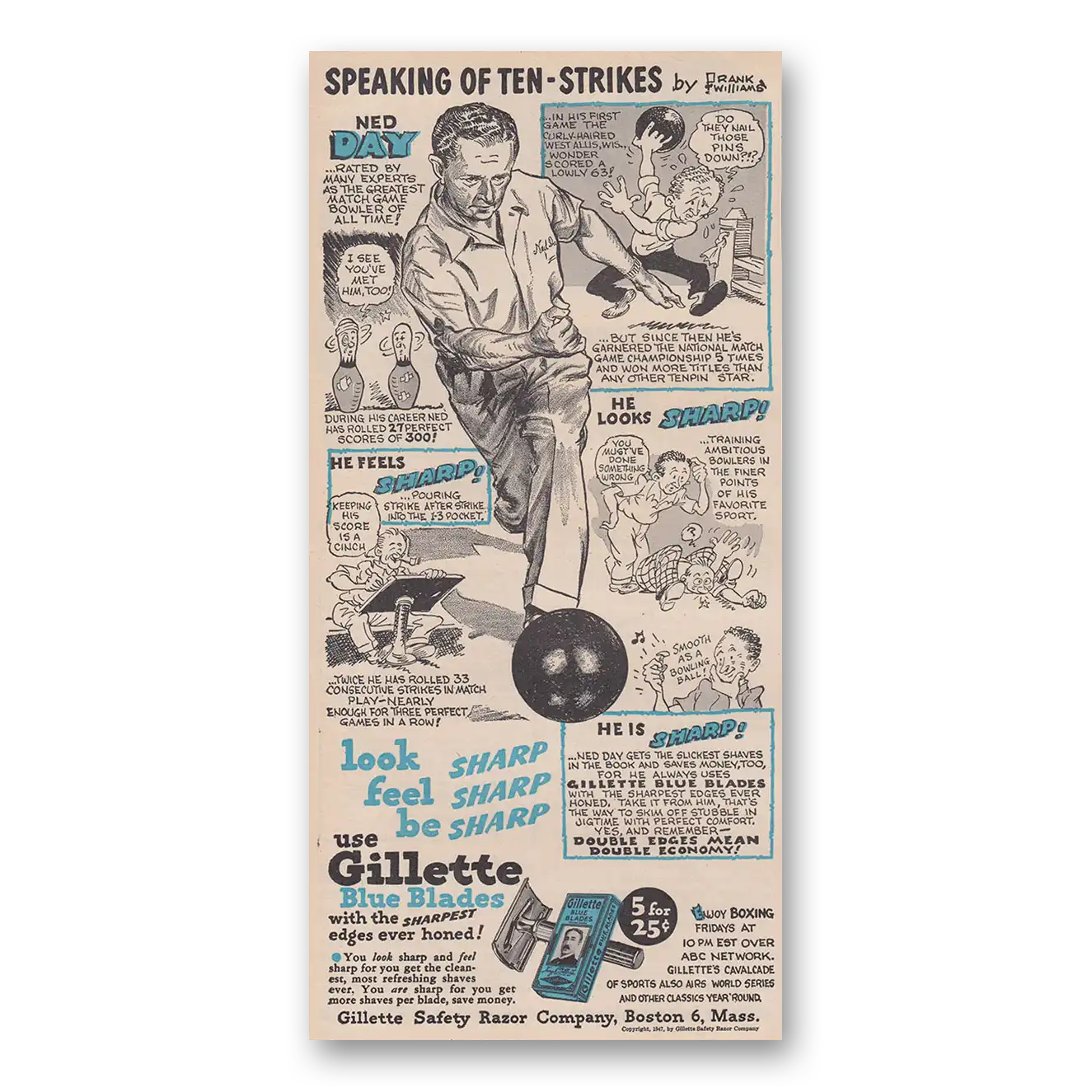 1947 Gillette Blue Blades Print Ad | Ned Day
