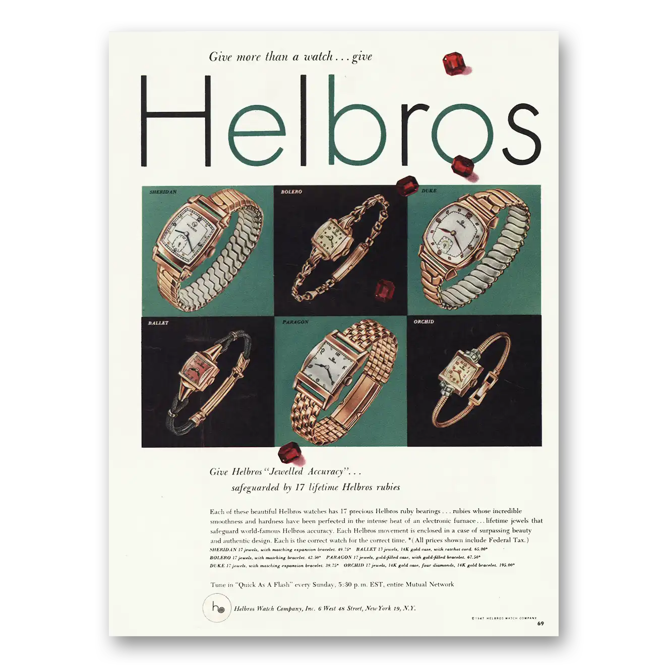 1947 Helbros Watch Print Ad | Jewelled Accuracy