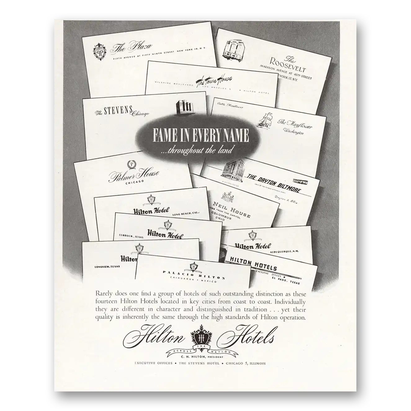 This is an original 1947 Hilton Hotels print ad published by Hilton Hotels.
