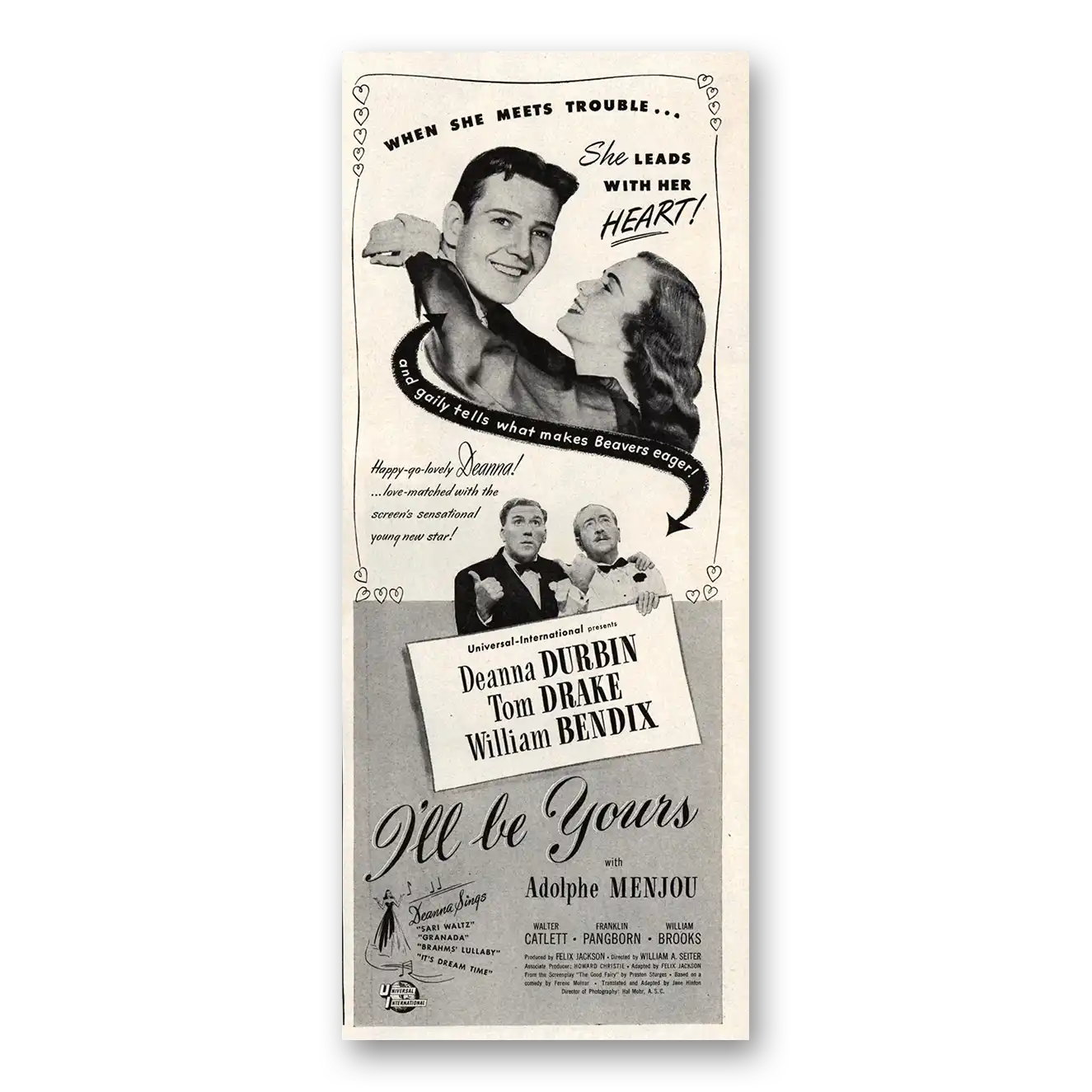 1947 Ill Be Yours Movie Promo Print Ad | Deanna Durbin
