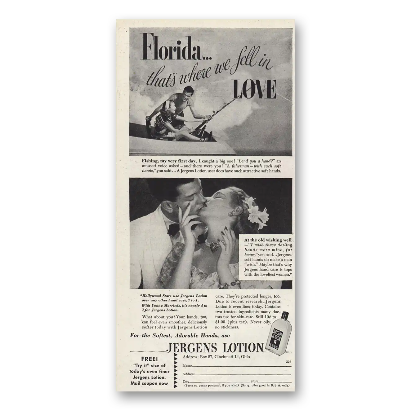 1947 Jergens Lotion Print Ad | Fell In Love