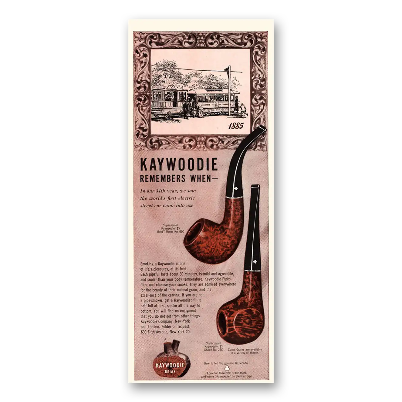 This is an original 1947 Kaywoodie Pipes print ad published by Kaywoodie.