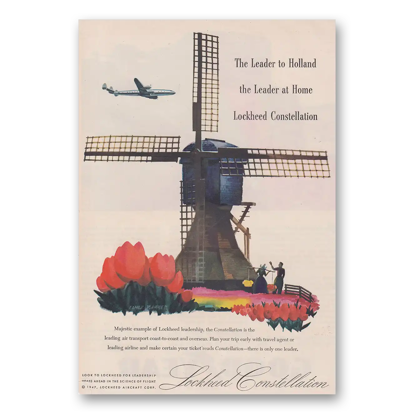 1947 Lockheed Constellation Print Ad | Leader Holland