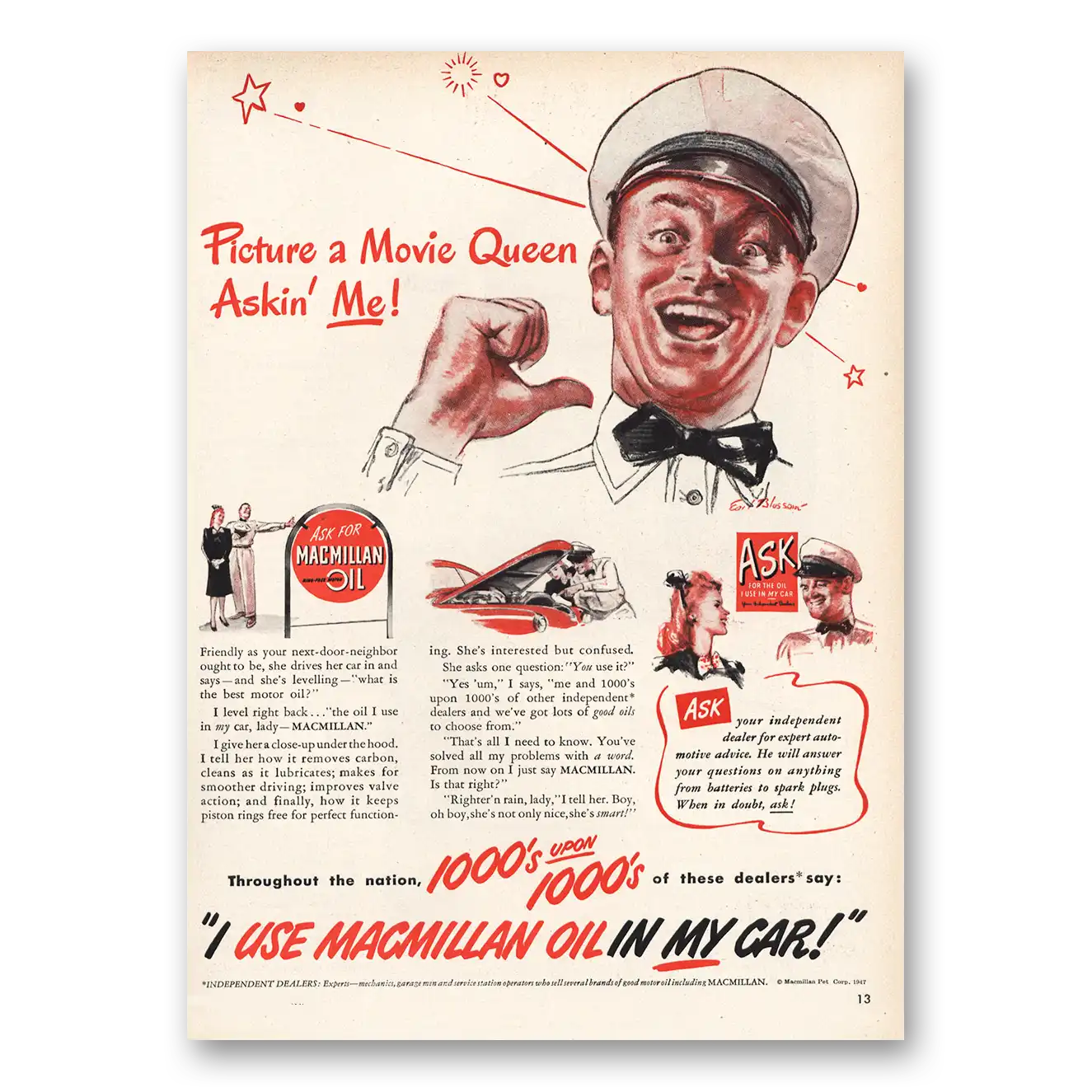 1947 Macmillan Oil Print Ad | Movie Queen