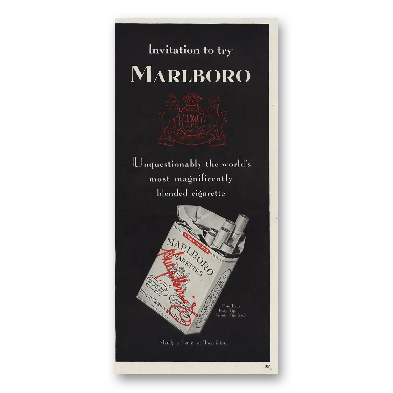 This is an original 1947 Marlboro Cigarettes print ad published by Marlboro.
