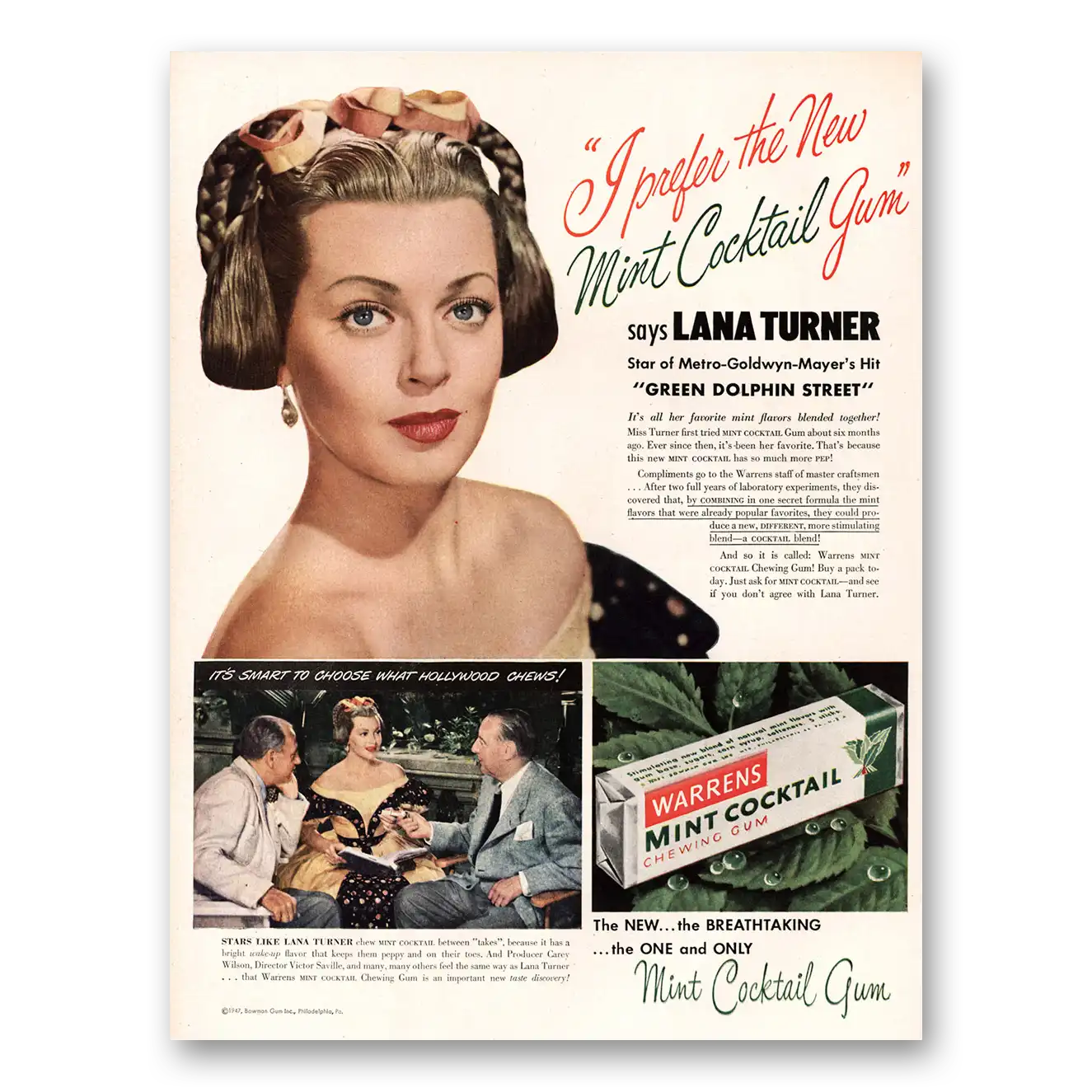 1947 Mint Cocktail Gum Print Ad | Lana Turner