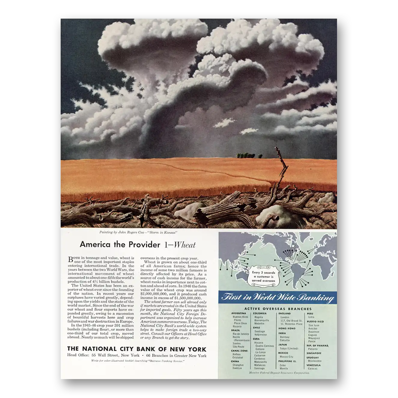 1947 National City Bank New York Print Ad | Wheat