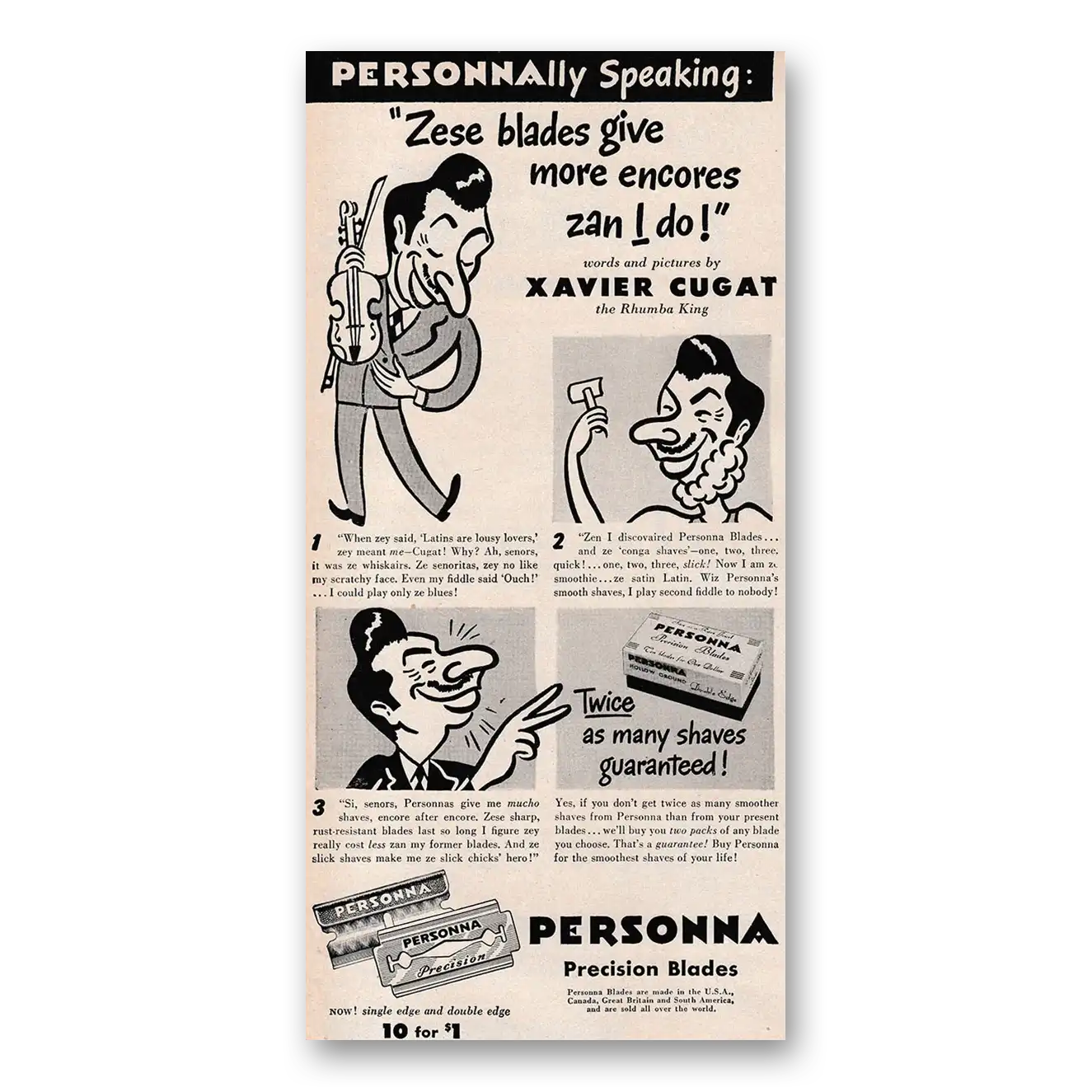 1947 Personna Precision Blades Print Ad | Xavier Cugat1947 Personna Precision Blades Print Ad | Xavier Cugat