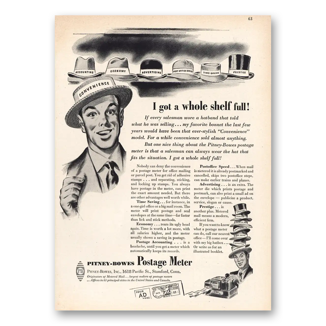 1947 Pitney Bowes Postage Meter Print Ad | Shelf Full