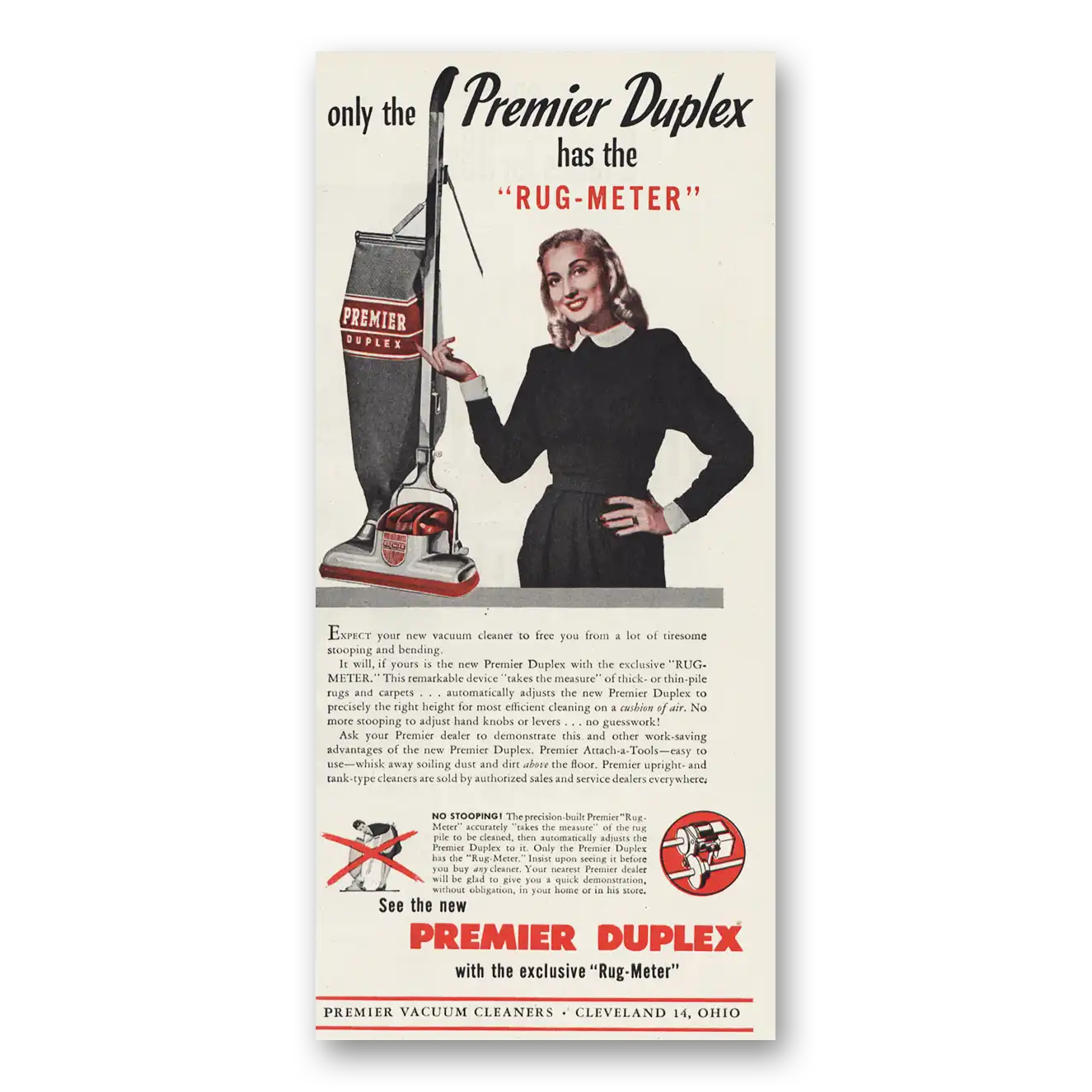 1947 Premier Vacuum Cleaners Print Ad | Rug Meter