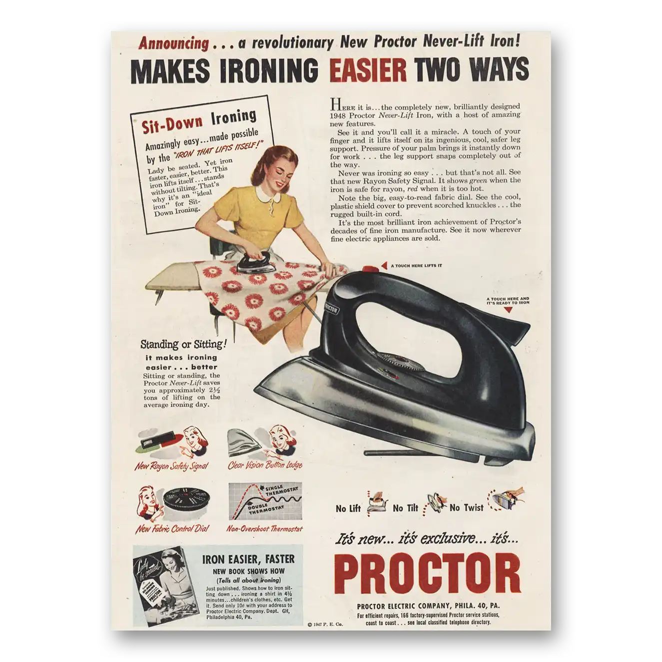 This is an original 1947 Proctor Iron print ad published by Proctor Electric Company.