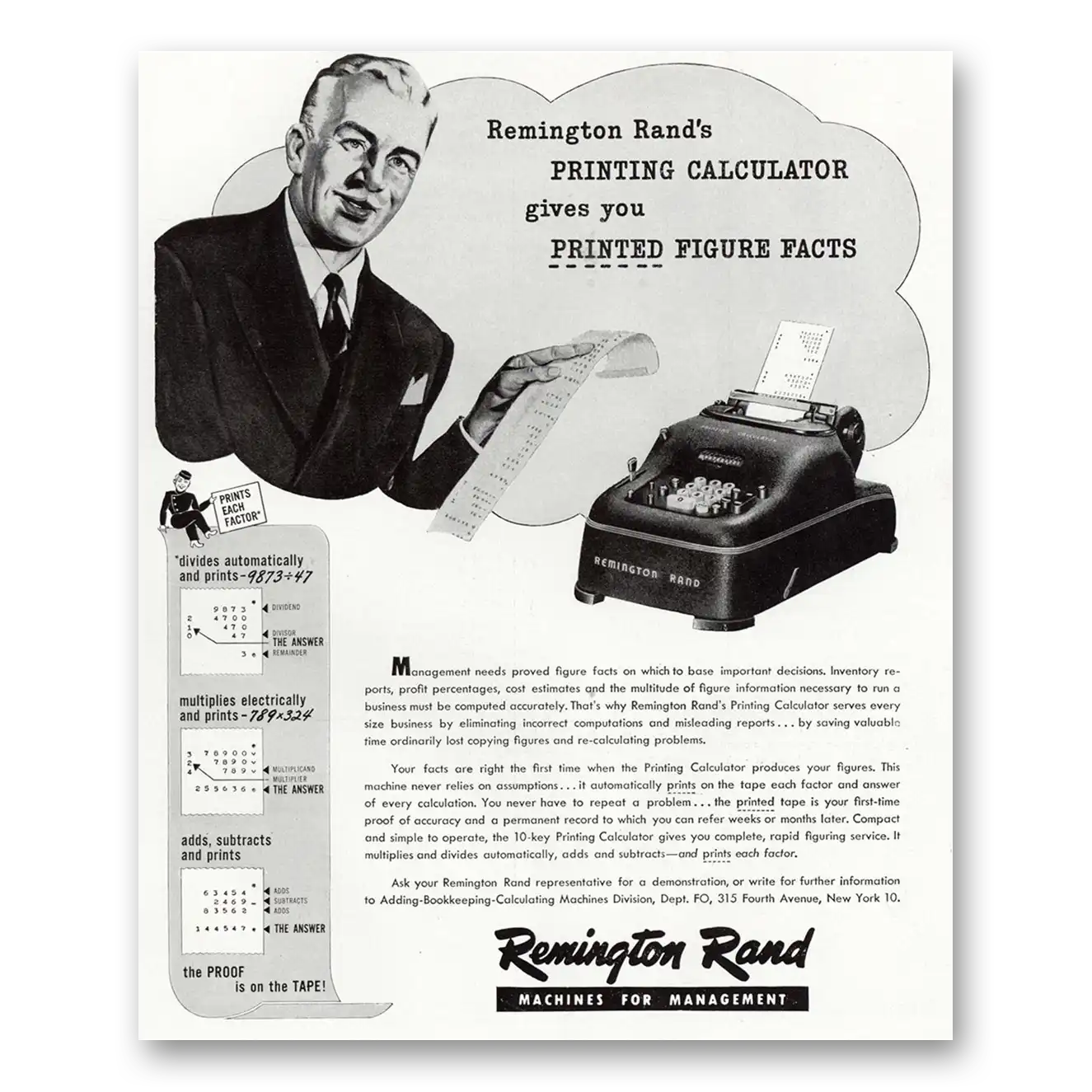 1947 Remington Rand Printing Calculator Print Ad | Figure Facts