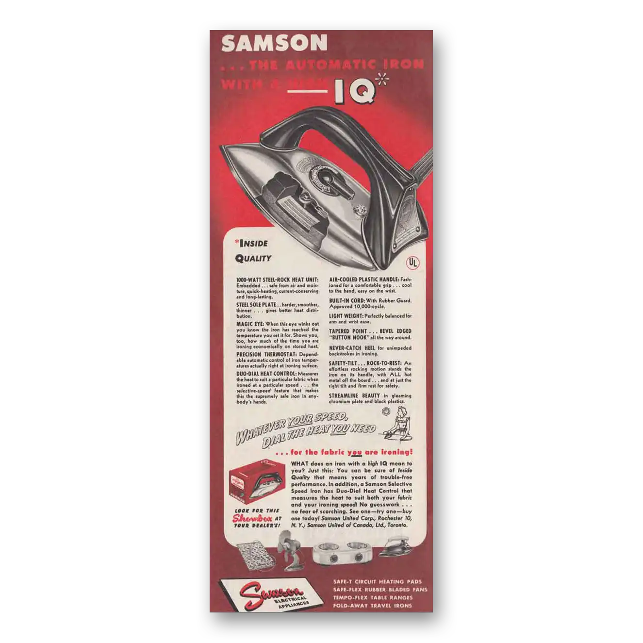 1947 Samson Iron Print Ad | Automatic Iron