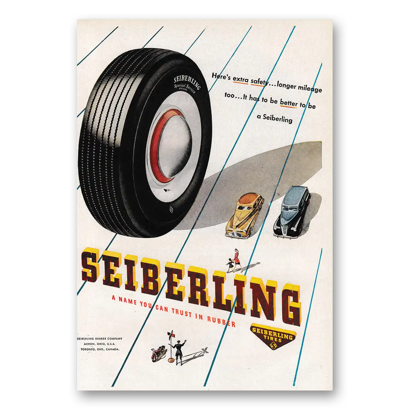This is an original 1947 Seiberling Tires print ad published by Sieberling Rubber.
