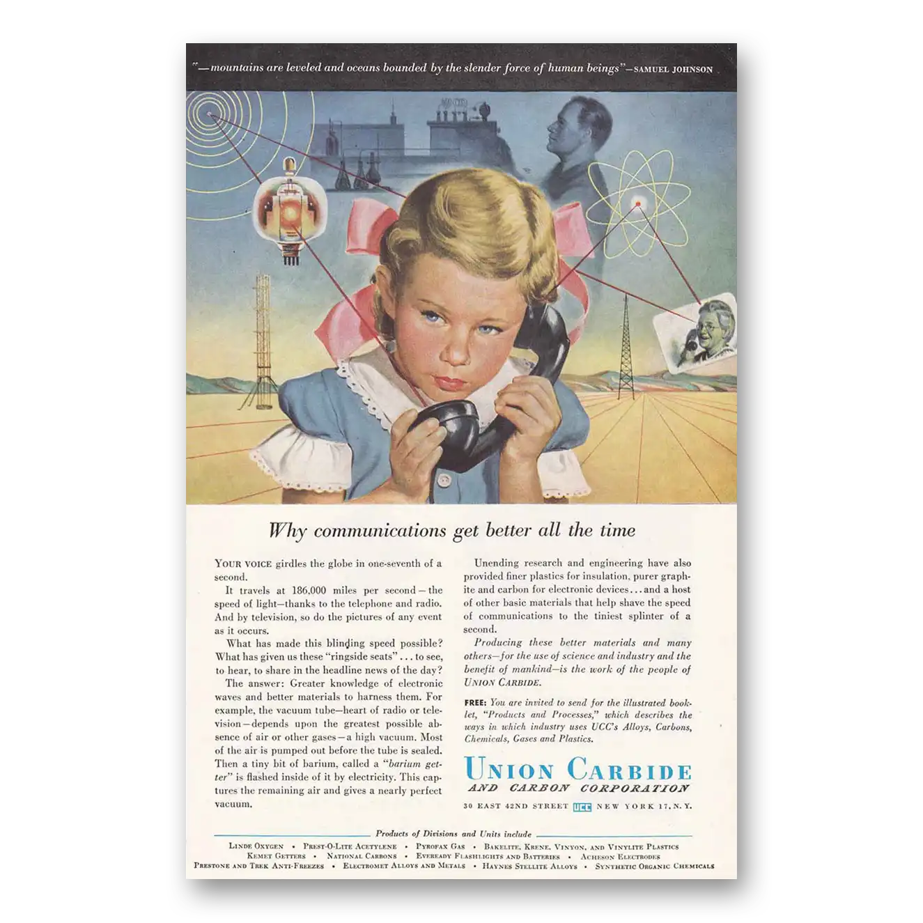 This is an original 1947 Union Carbide print ad published by Union Carbide.