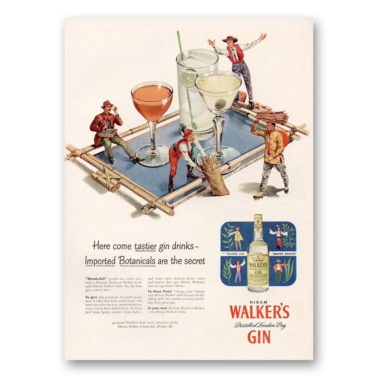 This is an original 1947 Walkers Gin print ad published by Hiram Walker.
