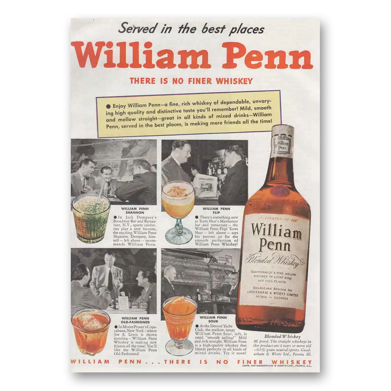 1947 William Penn Whiskey Print Ad | Best Places