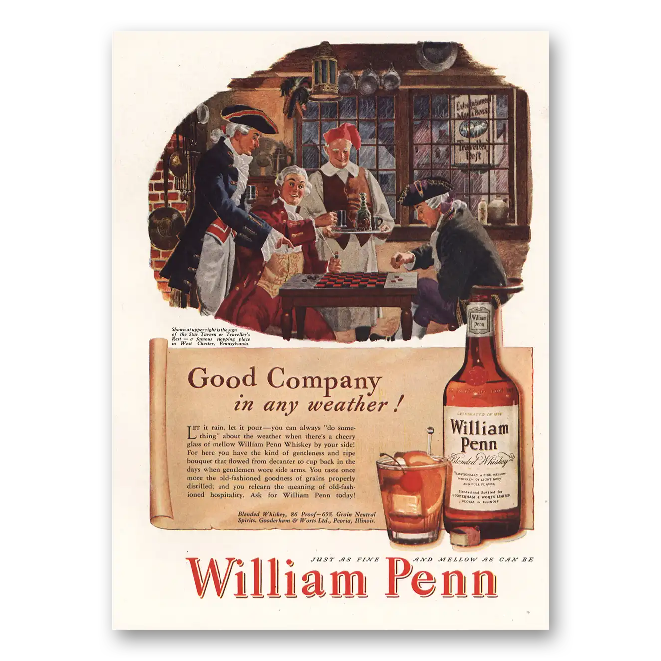 1947 William Penn Whiskey Print Ad | Good Company