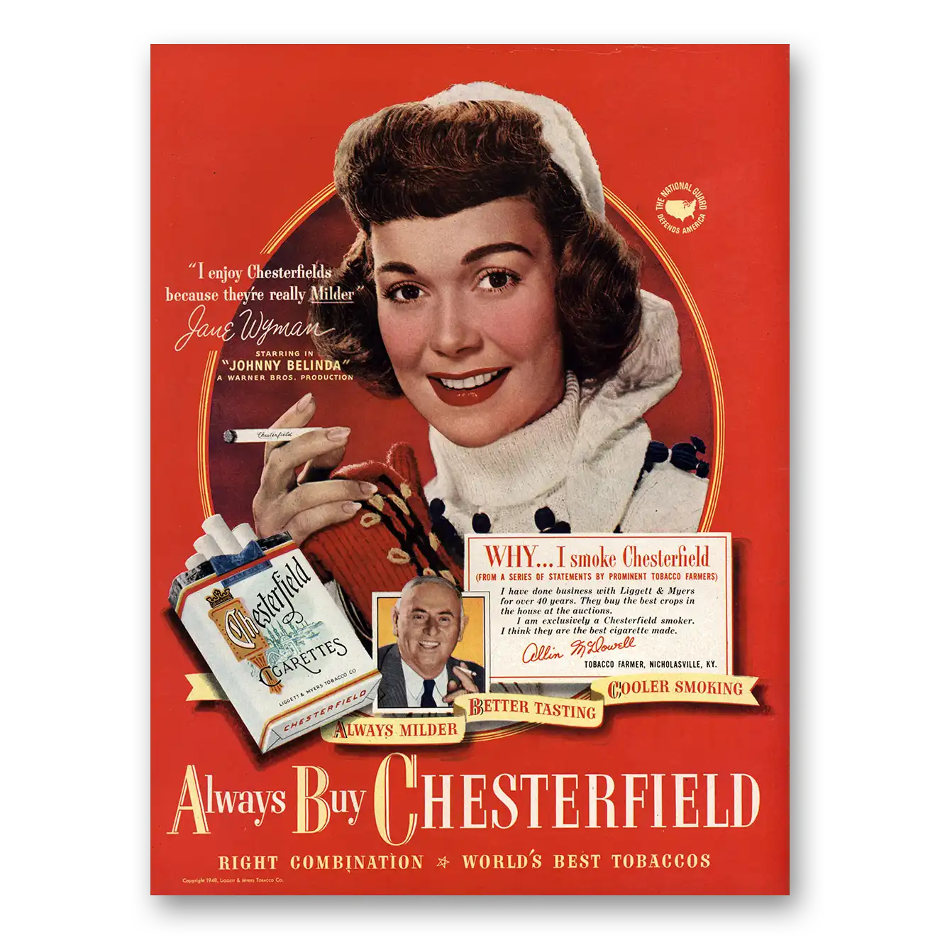 1948 Chesterfield Cigarettes Print Ad | Jane Wyman