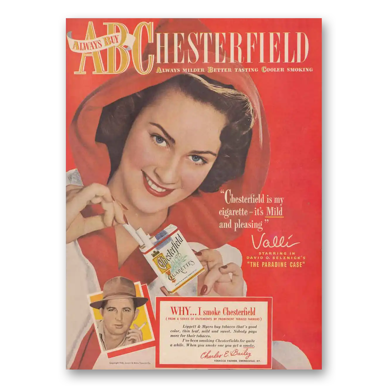 1948 Chesterfield Cigarettes Print Ad | Valli Paradine Case