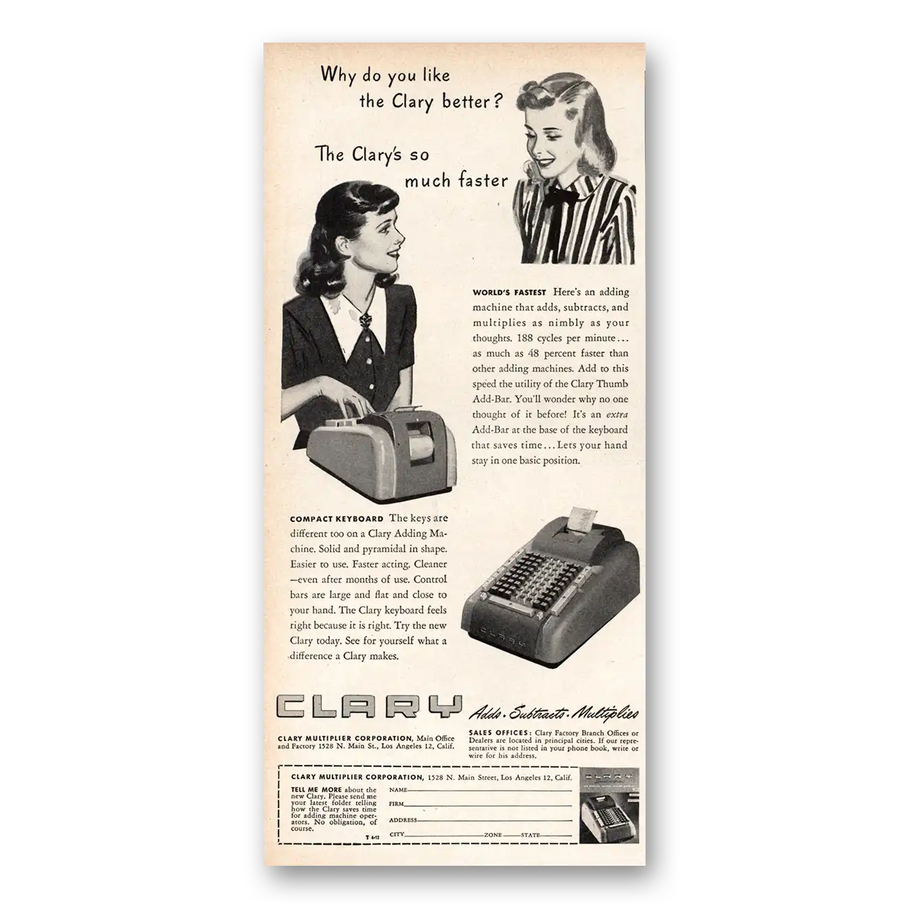 This is an original 1948 Clary Adding Machine print ad published by Clary.