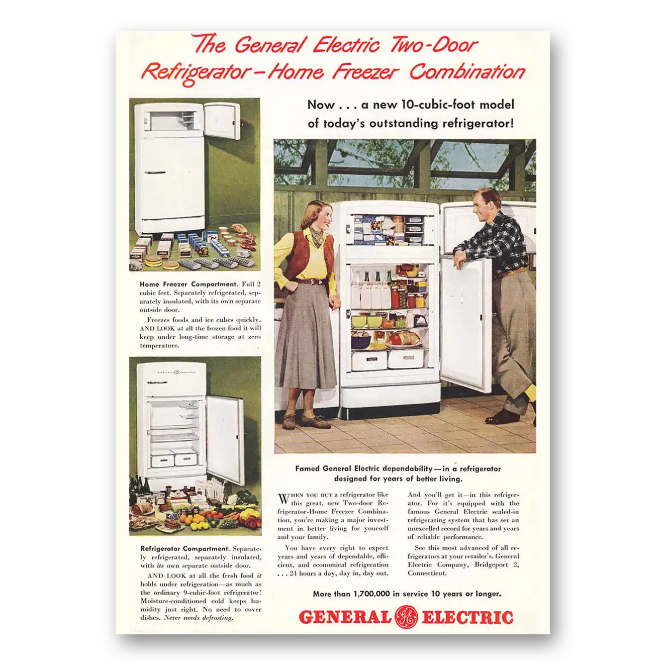 This is an original 1948 General Electric Refrigerator print ad published by General Electric.