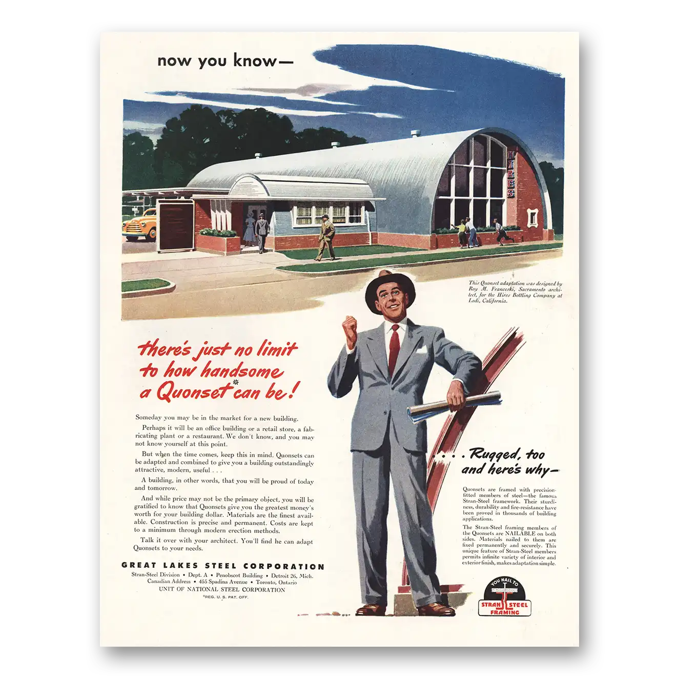 1948 Great Lakes Steel Print Ad | Handsome Quonset