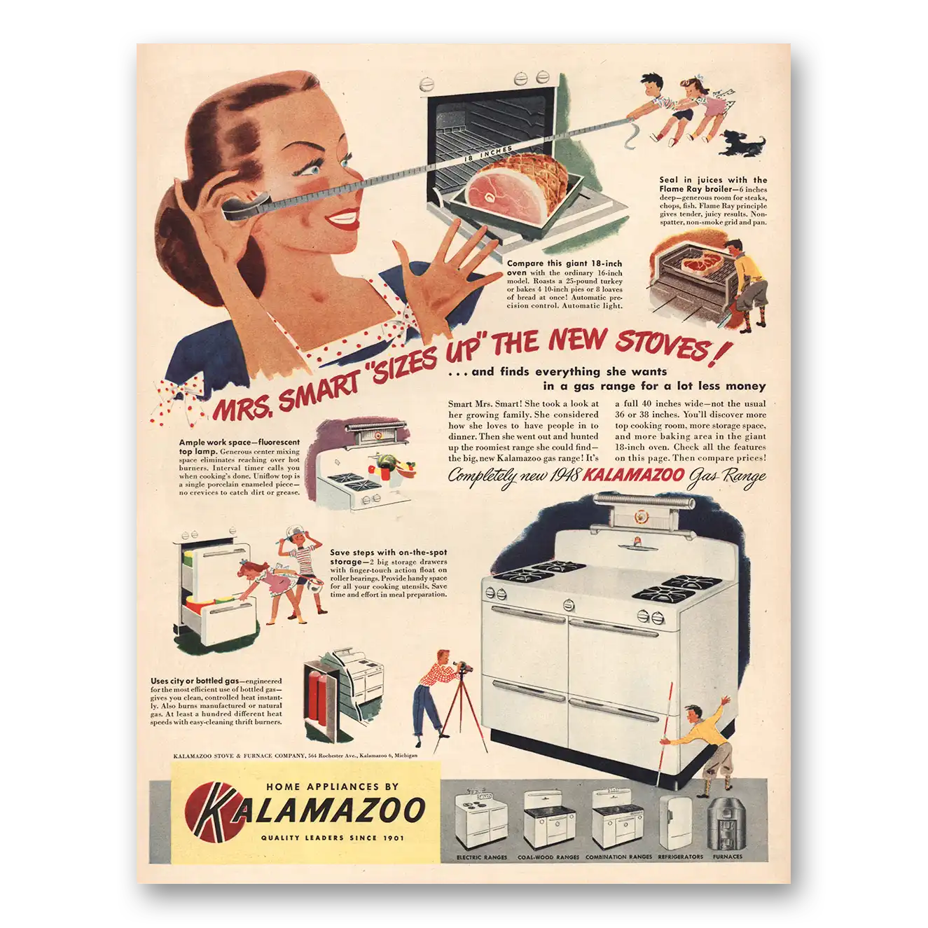 1948 Kalamazoo Appliances Print Ad | Mrs Smart