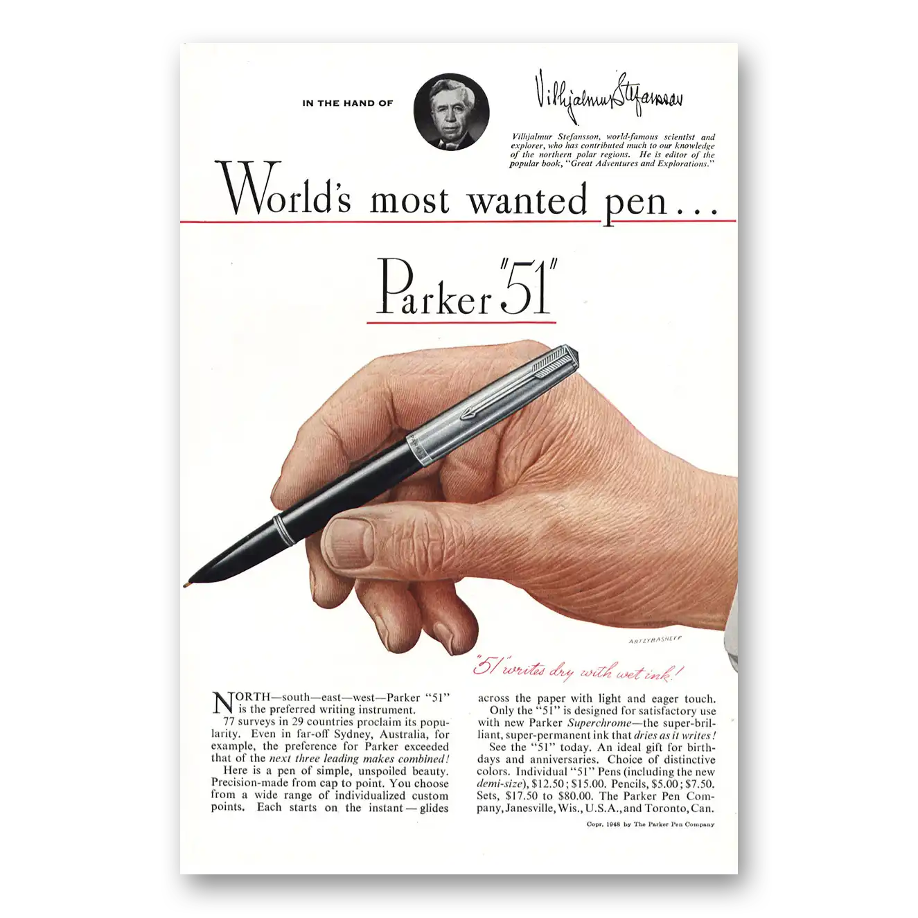 1948 Parker 51 Pen Print Ad | Vilhjalmur Stefansson