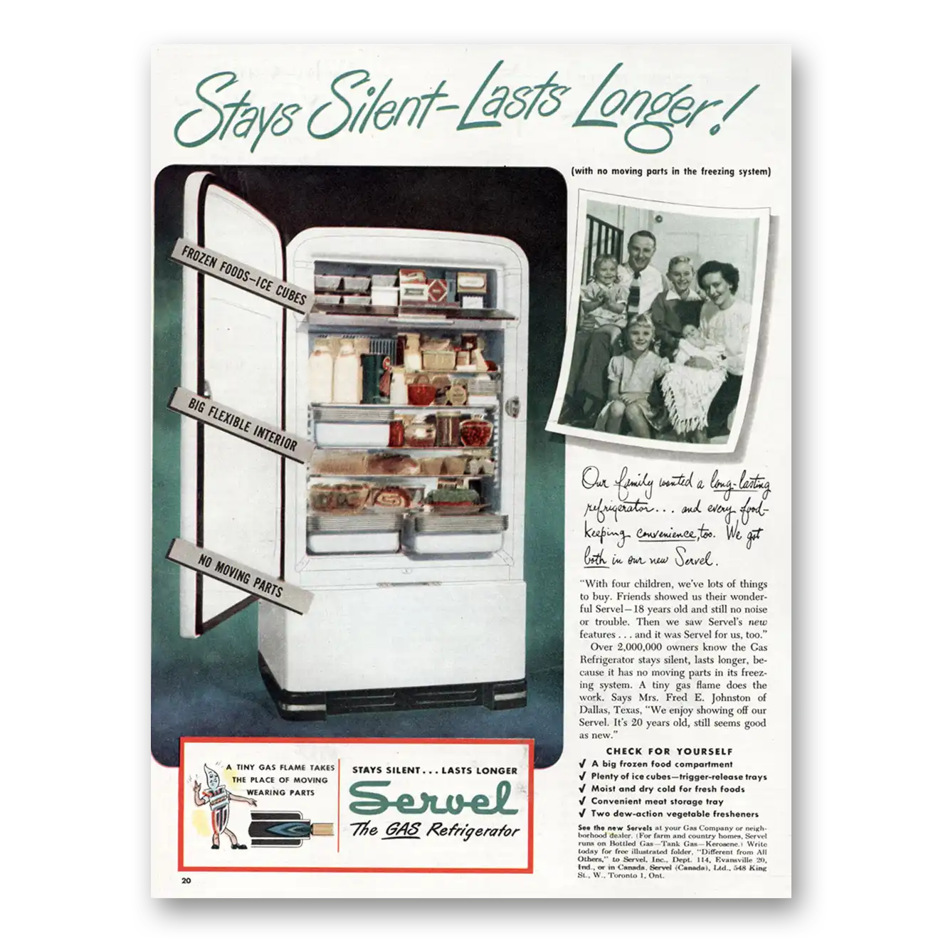 This is an original 1948 Servel Refrigerator print ad published by Servel.