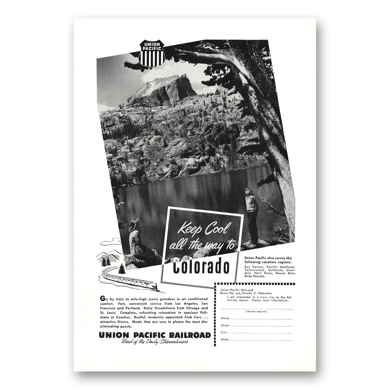 1948 Union Pacific Railroad Print Ad | Keep Cool