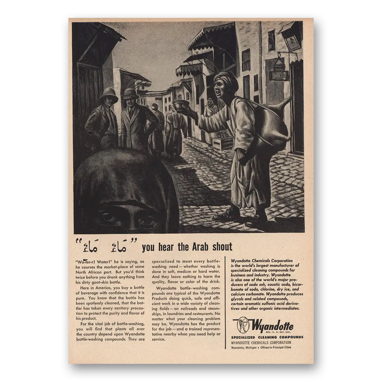 1948 Wyandotte Chemicals Print Ad | Hear The Arab Sout
